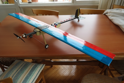 Uçak elektronik donanımıyla birlikte (pil dahil) 680 gram. 1350 - 2200 KVA arasında pil takılabiliyor. Gövde için karbon çubuk kullandım. (kırık bir oltadan çıkma). Kanatlar sabit kanat, üzerlerinde flap yok.